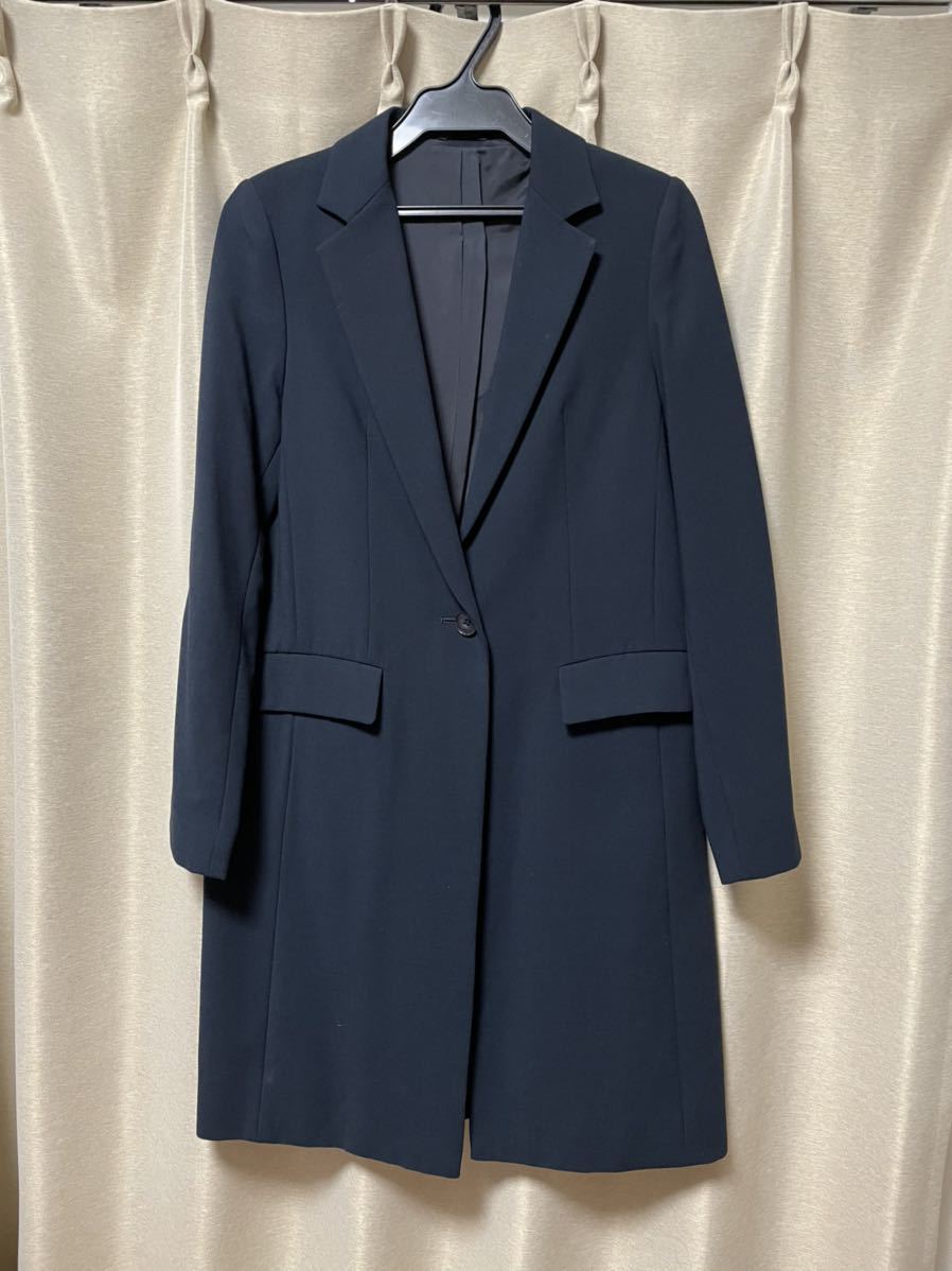 ご覧頂きありがとうございます。【色】ネイビー【素材】表地:羊毛92% アンゴラ8%裏地:キュプラ100%【サイズ】平置き肩幅37センチ身幅44センチ着丈88センチ質問等ありましたら気軽にして下さいね。